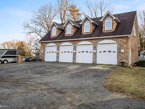 This beautiful home is back on the market after the buyer's financing fell through. Custom designed and stone built colonial with a large detached 4 car garage on 1.25 acres. The above garage space consists of a large storage space that could be converted to extra living space or an apartment. The home consists of 6 bedrooms and 4 full bathrooms. The master suite plus 3 bedrooms and full bath are on the upper level. The main level includes a full bath, an additional bedroom, a great room with high ceilings and a stone fireplace, a sunroom, a dining room, a large kitchen, an office space, plus a bonus room with an additional stone fireplace. The finished basement includes an additional bedroom, gym space, tanning room, theatre with fireplace and wet bar, laundry room plus an extra room that can be used as a bedroom, and a large storage area. Step out onto the large deck for entertaining or enjoy roasted marshmallows near the fire pit. The property also boasts 2 large sheds and a 30x40 RV concrete pad. Great home with lots of space for entertaining.