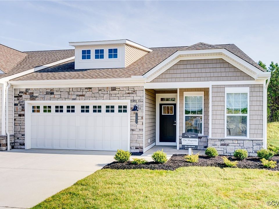 MODEL OPPORTUNITY - THE MAGNOLIA, A QUICK MOVE-IN HOME. Chickahominy Falls is Richmond's first and only Agrihood for those 55 and better,nestled on 180-acres in Hanover County. Centered around a working farm, residents of this community will not only benefit from farm-fresh products, but will enjoy resort-style amenities including a community room, clubhouse,pickleball, pool, fitness center,& walking/jogging trails.This home was built to showcase upgraded selections and designer finishes, like custom paint, electrical fixtures, window & wall treatments, and draperies — all which convey. This Magnolia home is a thoughtfully designed townhome featuring true-first floor living. Inside, you are greeted by a spacious open floor plan featuring a family room with a gas fireplace, cafe, and kitchen with an oversized island, UPGRADED quartz countertops, and Samsung stainless appliances (INCLUDED). The owner's suite includes dual walk-in closets, curbless shower with a seat and a private bath with dual vanities. The first floor also features a flex room, additional bedroom, full hall bath, and laundry room. On the second floor, you will find a guest oasis, perfect for company, and a temperature controlled storage room. This home is complete with a rear, upgraded 3-season room and 2-car garage. Call us today to learn more!*Photos are of actual home for sale. Call us today! All appliances in home convey as is.*Staged as Model, never lived in before!