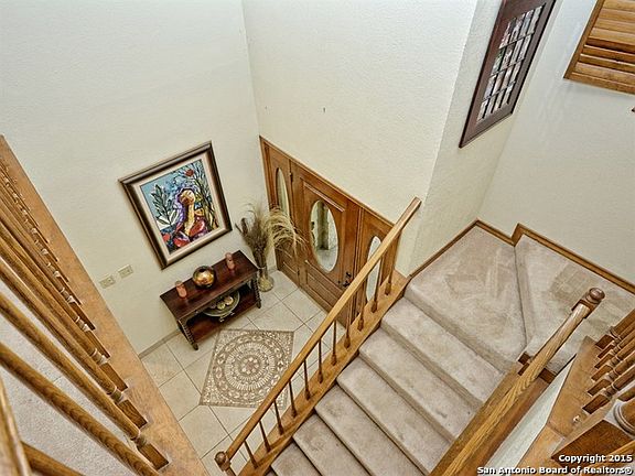 Desirable Helotes city limits!This home has everything. Established neighborhood, quiet street & natural hill country landscaping on over an acre.Spacious 5 bedrooms, 3 baths, open floor plan, custom built!Two sided fireplace in living area.Separate formal dining.Kitchen w/Center Island & breakfast, spacious counterspace!Upstairs master boosts hill country views off of the private balcony.Oversized master w/double shower. Tranquility at its best! Northside school district, easy access to 1604! A MUST see!