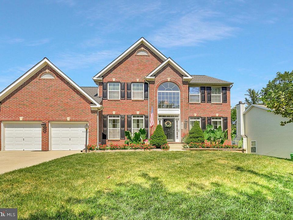 Welcome to this beautifully maintained brick front colonial, featuring a two-car garage and a thoughtfully designed layout that combines comfort, style, and functionality. From the moment you step inside, you'll appreciate the attention to detail and high-end finishes throughout. The main level boasts gleaming hardwood floors and a grand staircase, along with a versatile den/study enclosed by elegant French doors—perfect for a home office or reading nook. The formal living room showcases crown molding and soaring 9-foot ceilings, while the formal dining room is highlighted by crown molding and chair rail, ideal for hosting dinner parties and special occasions. The gourmet kitchen is a true standout, featuring quartz countertops, a ceramic tile backsplash, an island with built-in electric cooktop, and 42-inch cabinets offering ample storage. Adjacent to the kitchen, the bright and airy morning room provides the perfect spot for casual dining. A convenient main-level laundry room and powder room complete this level. Upstairs, the luxurious primary suite offers vaulted ceilings, a spacious walk-in closet, and a spa-like ensuite bath with double vanity, soaking tub, and separate shower. Three additional generously sized bedrooms and a full hall bath provide plenty of room for family and guests. The fully finished basement adds even more living space with a large recreation room, full bathroom with tub, a utility room, and a versatile flex space that can be used as a bonus bedroom, gym, or media room. Ideally located just minutes from restaurants, shopping, and major highways, this home truly has it all. Don’t miss out—schedule your private tour today! This one won’t last long!
