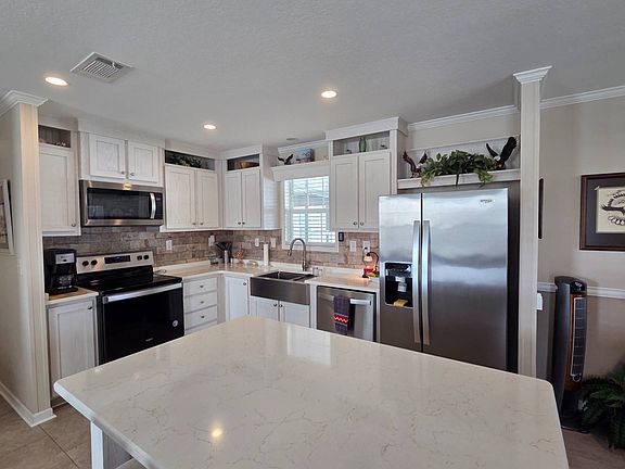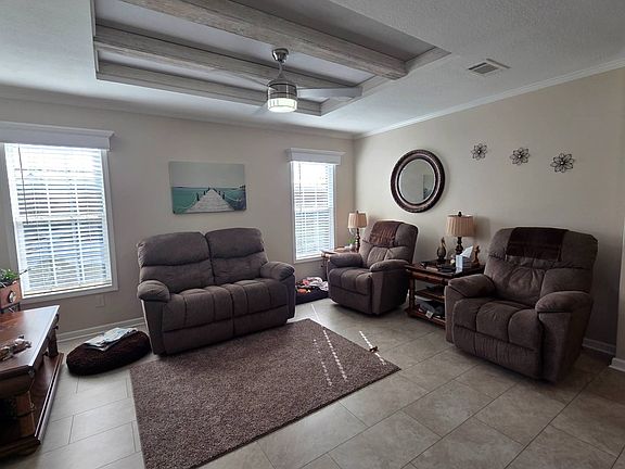 Welcome Home! Whether you are downsizing or looking for a winter getaway this is a beautiful home to call home! You will notice the open floor plan and upgrades as soon as you walk in. Where is the VALUE you ask? Quartz Counters in the kitchen including the island, SS appliances, Brick style tile backsplash, Vinyl Plank floors through out, NEW ROOF 2024, sheet rock walks, recess lighting and a country style beam tray ceiling in the living room, plus two sheds outback to satisfy your storage needs. Also, enjoy the Florida weather in the 12x22 screen room. Community has nice amenities which include a pool, pickleball court, fire pit, picnic screen room and club house for all of the activities and events. Community is also pet friendly and has a nice size dog park. Make sure to ask about age qualifications! Lifestyle fee is attainable at $560 which includes water, sewer and lawn care. Plus complimentary cable and internet. Trash is on a 6 month program which is $100 for seasonal resident and $200 for the year around residents! Community is close to the famous Webster Market, I75 and Florida Turnpike, shopping, dining and a short trip to The Villages and local attractions. Call this beauty home before someone else does!!!