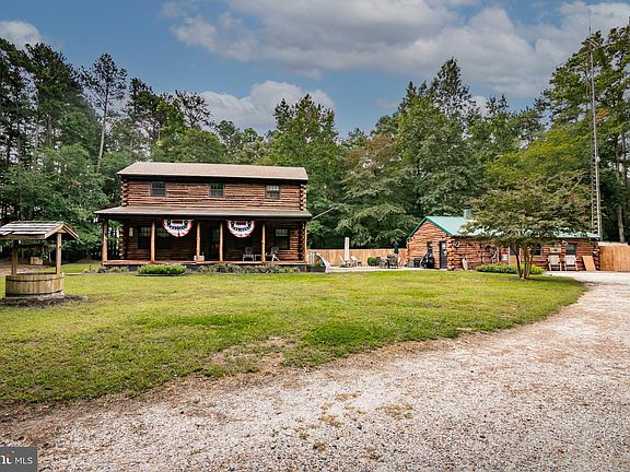 Discover a unique gem in Mardela Springs at 10206 Sharptown Rd—a charming log home with two bedrooms and two bathrooms nestled on a peaceful 6.89-acre plot surrounded by nature's beauty. The main residence boasts a welcoming large front porch. Step inside to find a lovely kitchen featuring beautiful cabinets, a wraparound countertop and a breakfast bar, seamlessly flowing into the dining area and living room, highlighted by cathedral ceilings and skylights. Adjacent to the living room, a spacious sunroom invites abundant natural light. Upstairs, two bedrooms are conveniently separated by the second bathroom. Venture to the expansive outbuilding measuring approximately 882 sqft, equipped with a living room, kitchen, bathroom, bedroom and office, offering endless opportunities. Use it as a hunting cabin, office space, or in-law suite. This property is perfectly situated for those seeking tranquility and versatility. Call today for your private showing! **Being sold AS-IS**