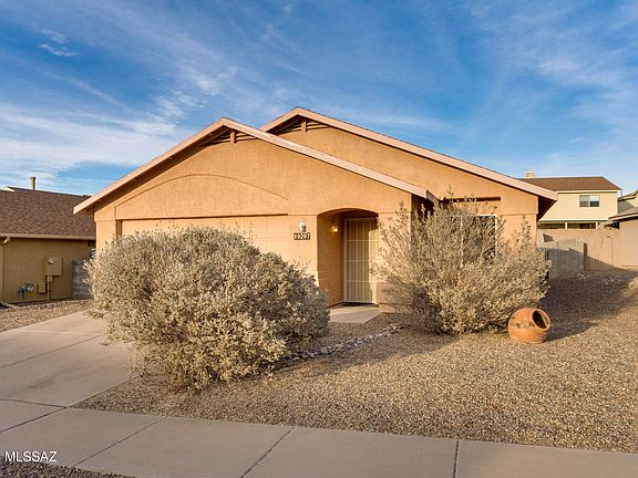 This home offers 1,598 square feet of living space with 3 bedrooms and 2 bathrooms. Built in 1999, the property features a 2-car garage and an extended covered back patio. The interior includes a living room with a dining area, a kitchen, and a family room with a breakfast nook. Recent updates include an efficient newer HVAC system and hot water heater - no carpeting. Situated in the popular Rita Ranch area within the award-winning Vail School District, this property offers convenient access to shopping, parks, Interstate 10, and major employers like Raytheon, Davis-Monthan Air Force Base, and Amazon. It's an ideal choice for first-time buyers or investors looking for an excellent home in a rapidly growing part of Tucson.
