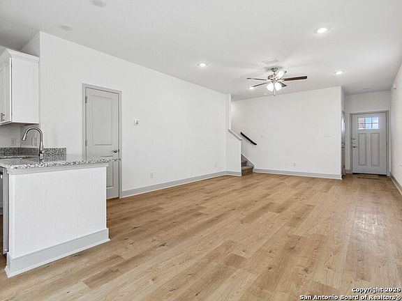 Close to Seaworld, 1604, Highway 90 and only 20 minutes from Downtown San Antonio. 1505 sq ft, 3 bed, 2.5 bath and 1.5 garage with storage space and private backyard. Upgrades include stainless steel appliances, refrigerator, stove, microwave, dishwasher and water softener. Enjoy granite countertops, two-inch faux blinds, luxury vinyl plank flooring in all the wet areas and downstairs, 9 ft ceilings, foam insulation, and and electric car charging plug in the garage. INCLUDED IN RENT: HO DUES, WATER/SEWER, FRONT YARD MAINTENANCE, WASHER AND DRYER, WATER SOFTENER, FRIDGE**. EV CHARGER IN THE GARAGE.