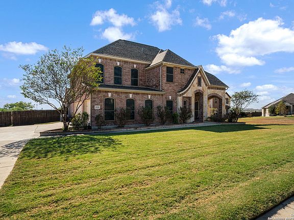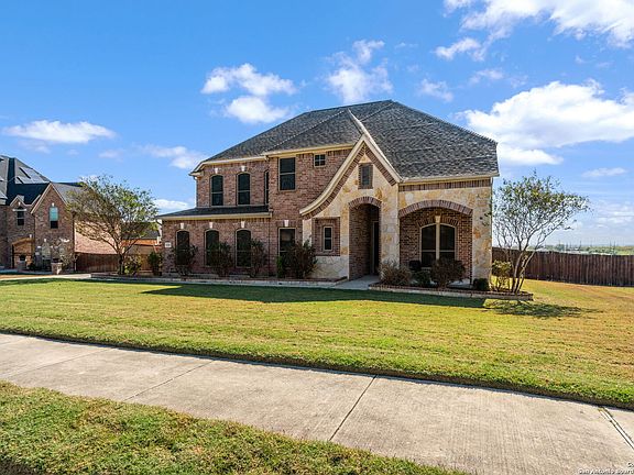 Sitting on a premium 0.55-acre lot, this impressive 4-bedroom, 3.5-bath, 3-car garage home offers space, style, and comfort. A beautifully landscaped exterior leads to a grand entry with a formal dining room, private study, and elegant spiral staircase. The living area features ceramic tile flooring, soaring two-story ceilings, and a brick fireplace. The gourmet kitchen is equipped with built-in stainless steel appliances, double ovens, granite countertops, and rich espresso cabinetry. Upstairs, you'll find a spacious game room and media room with surround sound-perfect for entertaining. Enjoy outdoor living on the large covered patio and balcony overlooking the nearby pond. This home combines exceptional design, quality finishes, and a serene setting-ready to impress the most discerning buyer.