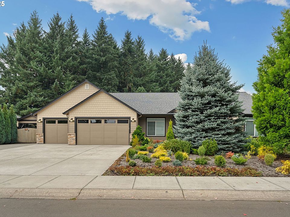 Welcome to this beautifully designed 2,161 sq. ft. single-level custom home set on a quarter-acre lot in the sought-after Fieldstone neighborhood. With an open floor plan, 9' ceilings, and an impressive trim package throughout, this home combines spacious living with refined craftsmanship.The heart of the home is the large living room featuring a gas fireplace and seamless flow into the kitchen and dining area—perfect for both everyday living and entertaining. The kitchen offers granite counters, a center island, pantry, and a newer gas range.The primary suite provides a relaxing retreat with double doors, a generous walk-in closet, and a luxurious ensuite bath featuring double sinks, a soaking tub, and a walk-in shower. A private door opens to the side patio for quiet morning coffee or evening unwinding.A front bedroom with double doors and a large window also makes an ideal home office or guest room. The oversized 3-car garage includes a bench area for projects and extra storage. Outside, enjoy a large, private, fenced yard with a covered patio, sprinkler system, and a behind-fence storage area for a boat, trailer, or other toys.Home, carpets and windows all professionally cleaned prior to going on the market. Additional features include a tankless hot water heater and a 1-year home warranty (available upon request with offer) for added peace of mind.Experience the comfort, quality, and convenience of single-level living in one of the area’s most beautiful neighborhoods. Open Houses Thursday 11/6 3pm-5pm, Friday 11/7 2pm-4pm and Saturday 11/8 12pm-2pm.