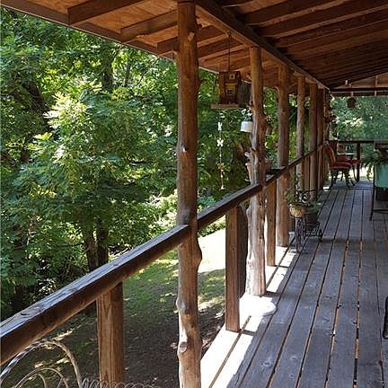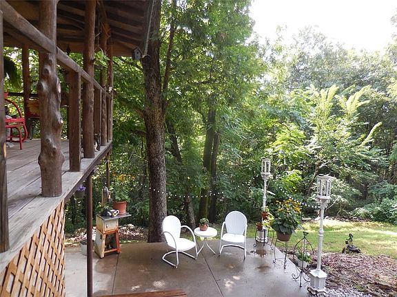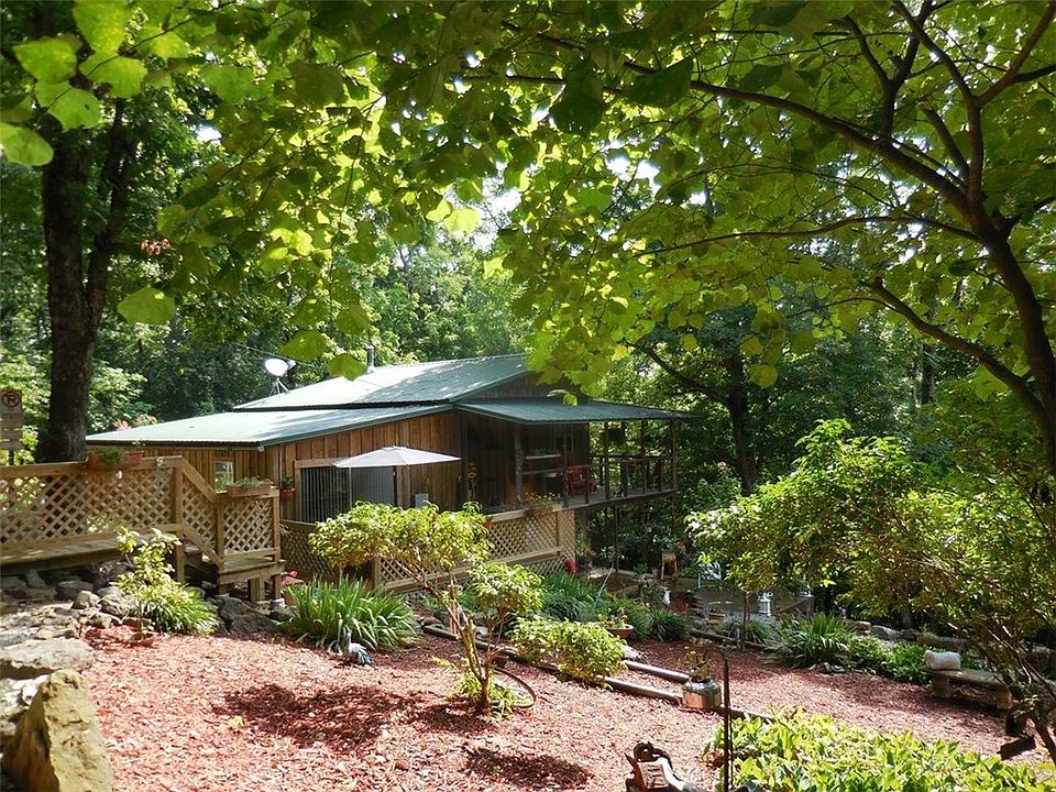 Secluded 27 acre woodland has 1/4 mile of paved frontage along Devils Den Rd only 2.4 miles off I49 exit as you travel towards the State Park. Nestled in the woods, your full or part time getaway is waiting for you. The 2 level 2BR 1.5BA centrally heated and cooled rustic retreat walks onto a wrap-around deck on 3 sides. 1024 sq. ft. main level has high ceiling, wood laminate floors & corner woodstove hearth. 512 sq. ft. lower level w/ laundry area has separate entrance. Unique hillside setting enjoys an elevated theatre setting for observing nature.