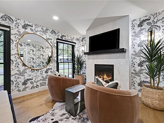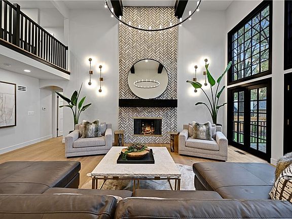 Step inside this luxuriously reimagined residence, where creative, thoughtful design and exceptional craftsmanship redefine modern living. The open-concept main level features new hardwood flooring, an expanded great room with a custom herringbone brick fireplace, and abundant natural light. The gourmet kitchen is a true showpiece—custom white oak cabinetry, seamless quartz slab backsplash, dual sinks, 48” professional range, custom hood, pot filler, and pass-through windows for effortless indoor-outdoor entertaining. The morning room offers built-in banquette seating, a ventless gas fireplace, and designer finishes, creating the perfect gathering space.