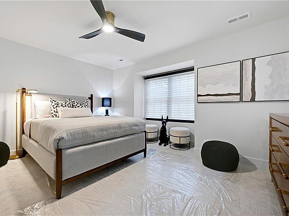 The first-floor primary suite delivers a spa-like retreat with a freestanding soaking tub, zero-entry shower, floor-to-ceiling tile, and a custom walk-in closet complete with built-ins and laundry hookups. Upstairs, discover a new loft and laundry room, custom railing, and designer lighting throughout. The finished lower level offers expanded living and entertainment space with custom library shelving, a quartz wet bar with full slab backsplash, beverage fridge, ice maker, bonus room, and beautifully finished baths.