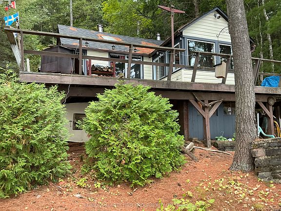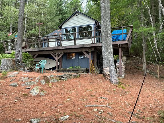 End of the season Estate sale - Buy now at fall pricing to set up for opening of the summer cottage season, just a few short months away. This is generally lake or snowmobile access. A short boat ride from the government launch and Oakview Lodge and Little Hawk Resort. Priced to sell and in "as is" condition. Any appliances, boats, furnishings, toys and equipment are as is, where is. There is a four piece bath that is sparingly used and an outhouse with electric heater and switch from the main cottage. I am told that the swimming and fishing are good! First time offered, formerly owned by the late Dr. David Stephen. Two upper bedrooms are loft. Storage and mechanical are under the cottage. Boathouse, firepit and upper deck fireplace (chimney is stored in the boathouse). Wrap around deck. Fixed sundeck and adjustable docks. The lake levels are high in the spring and low in the fall. Tranquility plus. Attach Schedule B and C.