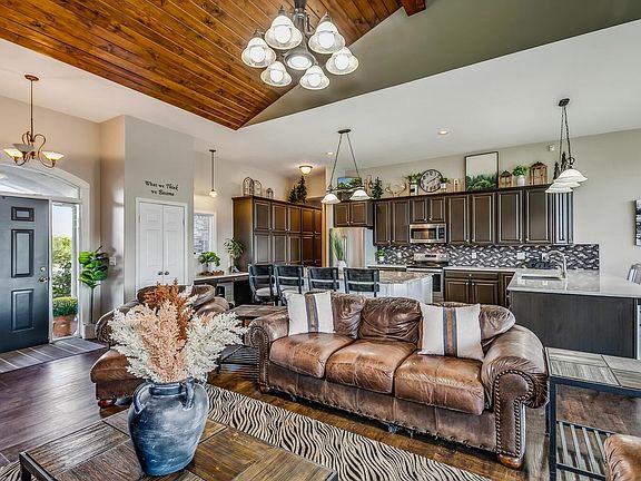 OMG, what a place. Somewhere between Heaven and Paradise. 28.55 acres that has never been in production--native grasses and trees and deer, pheasant, quail and turkey. The buffalo wallows still exist. Two ponds to fish. Your own game preserve and a hunting lodge to go with it along with a fabulous home! Main house is a great 5-bedroom custom built home with a huge, white granite island and a peninsula in the kitchen--2 places to seat your friends. Full basement with family room, wet bar, workout room, and a wonderful deck to watch the sunsets. Surround sound throughout the house. These people thought of everything. Even a sink in the garage to clean your game! Walk off the deck and there is your guest house with a porch and a view and living quarters and a 35 x 15 garage attached that is insulated, sheet rocked, painted, livable as it is heated and then there's the volleyball court, basketball court, 2 ponds for fishing, 28.55 acres to hunt turkey, deer, other wildlife, walking paths, hiking trails, 4-wheeler trails. There is a building to keep all your toys, tools and equipment in, it is 40 x 40 with concrete floor and front pad and of course it is insulated and has electricity. The house has a 3-car garage with a sink, closets, so plenty of room for your workshop, vehicles, toys and of course your hunting gear!!! Living quarters in the building with the front porch. The lodge/bunk house has a fireplace, bedroom, living room, bath, dining area, kitchen, stove, sink, fridge, microwave, heated by a pellet stove. The 40 x 40 building is insulated with concrete pad. This home and homestead were custom designed for the owner--they thought of everything. New HVAC in 2020 and new roof 5 years ago. This property has been maintained and loved from day one. Make this your home, your hunting cabin or your weekend getaway. What a great place to enjoy family and friends without driving hours and hours. It is just down the street from Cy's in Sedgwick, so you don't even have to cook--drive to town to eat. This my friend is a "Winner, winner Chicken Dinner" of a place. You don't want to miss out. Only wonderful memories will be made on this ponderosa. Come check it out today!