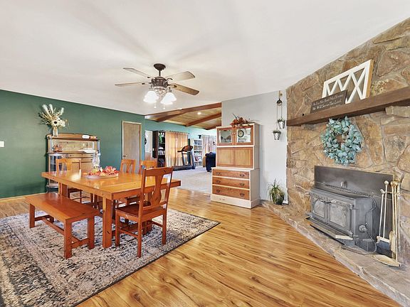 Country living at its finest! This beautiful, updated home with an open floor plan and spacious rooms is located just 5 miles east of Augusta with paved access. You'll love the vaulted ceiling in the family room with its wet bar and functional fireplace. Walk out onto the large wrap around deck that looks out upon the mini-orchard (pear, cherry, walnut & mulberry) and enjoy the sunsets or the vistas of the night sky. The yard is completely fenced of course. Each of the 5 bedrooms are generously sized. There is even a den/game room, a mudroom and an extra large pantry (11 x 4.5). The L-shaped 6.6 acre lot is the right size to fully enjoy all the benefits of country living! The beauty of this lot has to be seen to be appreciated. Easy access to 54 Highway means you are within minutes of Augusta, Eldorado, Wichita or wherever you want to go. Schedule your tour today. This one won't last long.