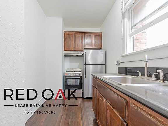 ~1 Month FREE~ Delightful Vintage Style Studio with Hardwood Floors, Air Conditioning, Stainless Steel Appliances, In-Unit Storage, and On-Site Laundry ~ In Prime Central Los Angeles! *MOVE-IN SPECIAL* **Resident will receive a one-time credit of 1 Month FREE off of the Market Rent Price of $1,575, on approved credit. The net effective rent shows the savings over the entire 12-month lease term. The advertised price is based on the NET EFFECTIVE RENT.* Home Highlights: Bathed in Natural Light: Revel in the charm of beautiful hardwood flooring complemented by an abundance of natural light. Enhanced Privacy: Window blinds provide adjustable light control and added privacy. Comfort at Your Fingertips: Stay cozy throughout the seasons with a ceiling fan, window unit A/C, and a gas furnace. Stylish Storage Solutions: Keep your space tidy with ample closet space, perfect for urban living. Cozy Kitchen: Channel your inner chef with custom cabinetry, sleek quartz countertops, and stainless steel appliances. Luxurious Bath: Unwind in a soaking tub with a hand-held shower head, paired with a classic pedestal sink and a bright mirrored medicine cabinet. Hassle-Free Utilities: Water, sewage, and trash services are included in your rent for added ease. Easy On-Site Laundry: Simplify your routine with convenient on-site laundry facilities. Pet-Friendly Paradise: Bring your furry companions along with a small monthly pet rent to make them feel at home. Convenient Location: Immerse yourself in the vibrant Koreatown community, celebrated for its rich cultural history, diverse dining, lively nightlife, and dynamic urban lifestyle. Don't miss out on the opportunity! Available for an immediate move-in. LEASE TERMS: One Year Lease Pictures and descriptions are of EXACT unit Square Footage is approximate. Street Parking Only. Showings may not be 1-on-1. All information must be validated on Red Oaks Website since 3rd party websites can feed incorrect information.