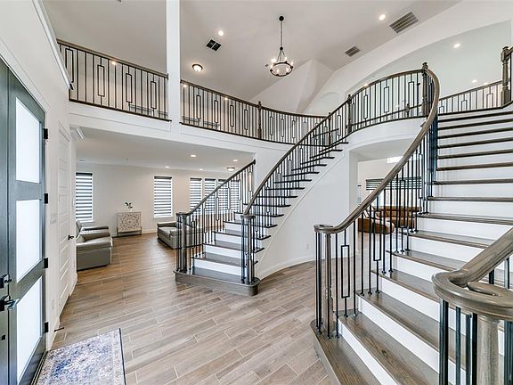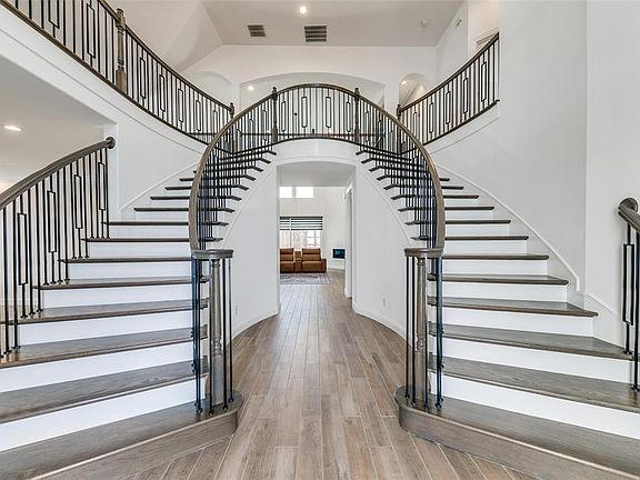 Discover the perfect fusion of style, space, and functionality in this exquisite Rockwall residence located within the coveted Breezy Hill community. Offering 5 bedrooms, 4 baths, and an unparalleled 3-car garage, this property is ideal for those seeking expansive living with a touch of luxury and convenience in a top-rated school district. Upon entering, be captivated by the open floor plan accentuated by spacious vaulted ceilings that invite natural light, creating an airy ambiance throughout. Modern living is effortless with two bedrooms conveniently located downstairs, providing excellent flexibility for multigenerational living or hosting guests. The heart of this home is its fully equipped kitchen, seamlessly connecting to two inviting living spaces and a dedicated dining area. Whether indulging in family meals or entertaining a large gathering, the layout is designed to accommodate with ease. Slide open the doors to a generous covered patio, the ultimate venue for alfresco dining and lively celebrations. Upstairs awaits a haven of relaxation and recreation. Discover three well-appointed bedrooms, two stylish bathrooms, and a multipurpose media room & game room, perfect for movie nights or gaming marathons. Attention to energy-efficient details is evident with R38 insulation and double-insulated windows, each adorned with premium plantation shutters or shades to enhance comfort and elegance. Enjoy endless outdoor adventures with the neighborhood pool, playgrounds, numerous parks, and bike trails that Breezy Hill offers. There's never a dull moment in this vibrant community. Come explore this treasure in Rockwall, where contemporary design meets family-friendly amenities in perfect harmony.