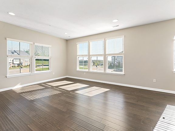 Gorgeous end-unit townhome in the desirable Overlook community at South Pointe! This Wexford model features a 4’ extension, 9’ ceilings, hand-scraped bamboo floors, and lighting upgrades throughout. The gourmet kitchen offers stainless steel appliances (new frig 2025), high-end granite, glass tile backsplash, oversized island, upgraded white dovetail cabinetry, and a built-in butler’s bar. The primary suite includes a custom walk-in closet, dual sinks, soaking tub, and oversized shower. Two additional bedrooms, a full bath, and second-floor laundry complete the upper level. The finished lower level provides extra living space, a two-car garage, and storage. Enjoy summer evenings on the deck with beautiful views. Recently professionally painted throughout, carpets were professionally cleaned and stretched, professionally cleaned! No hassle -Ready to move in home !