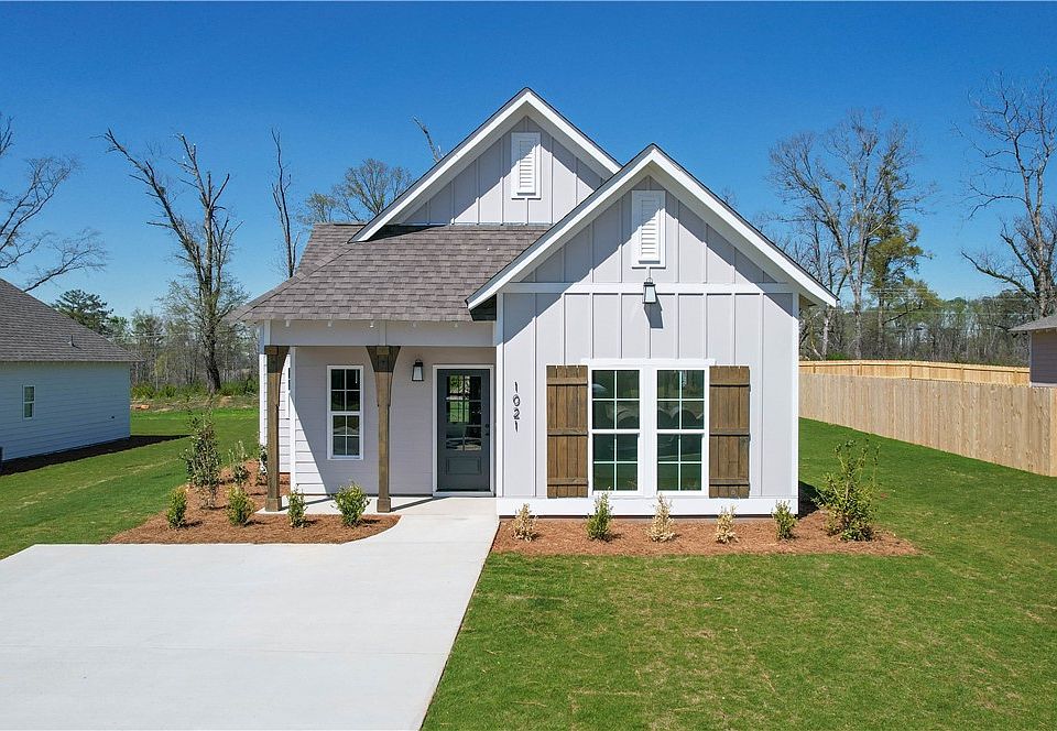 MOVE-IN Ready Home with Walk-In Tile Shower! The Todd B is a 3bedroom, 2bath home with 1395sq ft. The front door opens to a generous foyer with a coat closet. The foyer leads right into open concept living, beginning with the dining area & kitchen. The kitchen features a large granite island, pendant lighting & tile backsplash. Kitchen leads on into the living area, with large windows, flooding the home with natural light. The primary bedroom is located at the back of the home with a private ensuite bath, with a double vanity sink, large walk-in tile shower & walk-in closet. Bedrooms 2 & 3 are at the font of the home, both sharing a full, hallway bathroom. Laundry room found attached to the kitchen, beyond the pantry. Final feature of this home is the covered back porch, perfect spot for enjoying family & friends!