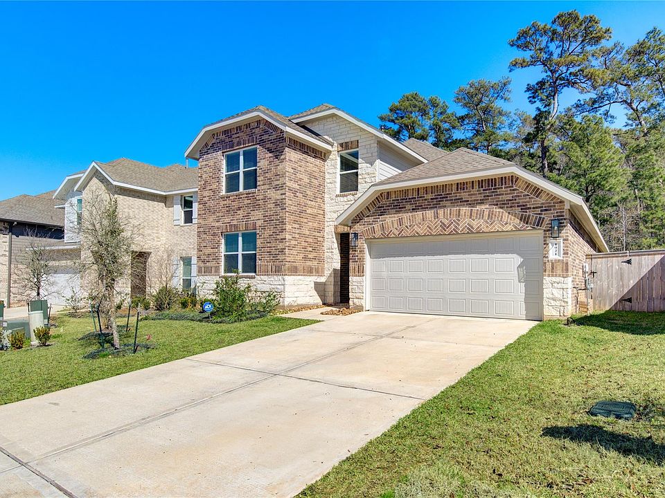 A perfect home for everyone, few miles from lake Conroe.—schedule your tour today! This fabulous D.R. Horton 2-story 2023 home with no back neighbors offers privacy, space, and modern comfort. Meticulously maintained and owner-occupied, it features 4 bedrooms, 3 full baths, and a game room. The well-designed layout is ideal for multi-generational living, with the primary suite and a guest room downstairs, each with a full bath. Upstairs, a spacious game room is complemented by two additional bedrooms. The large yard offers ample space for a future swimming pool and a whole home Water Filtration system. Enjoy outdoor living with a covered patio, sprinkler system, and no back neighbors. Zoned to great schools, this home is perfect for families. The community offers amenities, including a recreation center, pickleball courts, splash pad, pavilion, and fire pit.