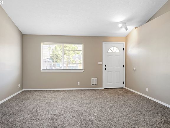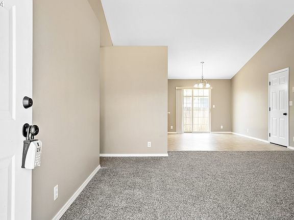 This cute and clean home was just updated with new paint, carpet, some fixtures, and is move in ready! The open floorplan with vaulted living area lives larger than the square footage. The kitchen has a large pantry and opens to the dining area with a sliding door to the patio. Attached 2 car garage. Fenced yard with a shed. Ample parking.