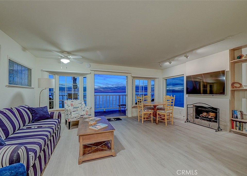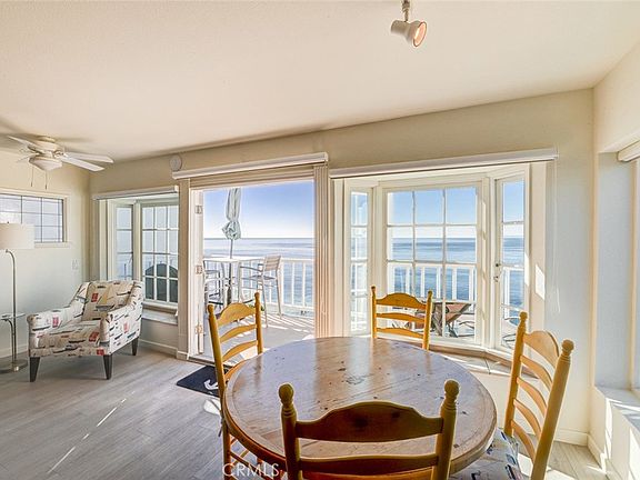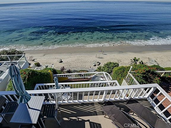 This stunning, fully furnished oceanfront/beachfront property boasts an unbeatable location with private steps leading directly to the sand. Enjoy breathtaking panoramic views of Catalina Island, Main Beach, and the North Coast lights from this two-bedroom, two-bathroom unit. The master bathroom and kitchen have been recently remodeled, and French doors lead to a private ocean view deck perfect for barbecues and watching the beautiful evening sunsets.
