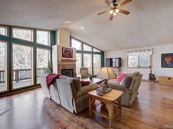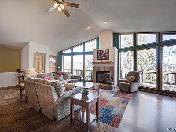 Stunning Mountain home set on a very private & quiet one acre lot and surrounded by Pines and Aspens. This beautiful home has a huge great room with gas fireplace and a wall of glass to enjoy nature and the abundant wildlife all around. The large spacious kitchen has a breakfast bar, newer stainless-steel appliances, a ton of hickory cabinets and lots of counter space. The dining room finishes off the great room and shows what a great open floor plan for entertaining. Down the hall you will find the large primary bedroom w/walk in closet and a spacious bathroom. Another bedroom and full bath complete the main level. Downstairs you will find a walk out lower level with huge family room and a large pellet stove to keep you warm and cozy. Additionally, this level has a bedroom, bath and laundry/utility room with a new furnace and hot water heater. The oversized garage allows plenty of room for parking (including your truck) and lots of storage. Enjoy outdoor living on the front redwood deck or the patio down below with plenty of room to spread out and you never know when a deer might wander by. Do not miss the backyard trex deck and imagine enjoying a nice evening in the hot tub. Some additional feature of this semi-custom home includes only one owner since being built, newer roof (2018), freshly stained siding, paved driveway and convenient dog run off of back of house.
