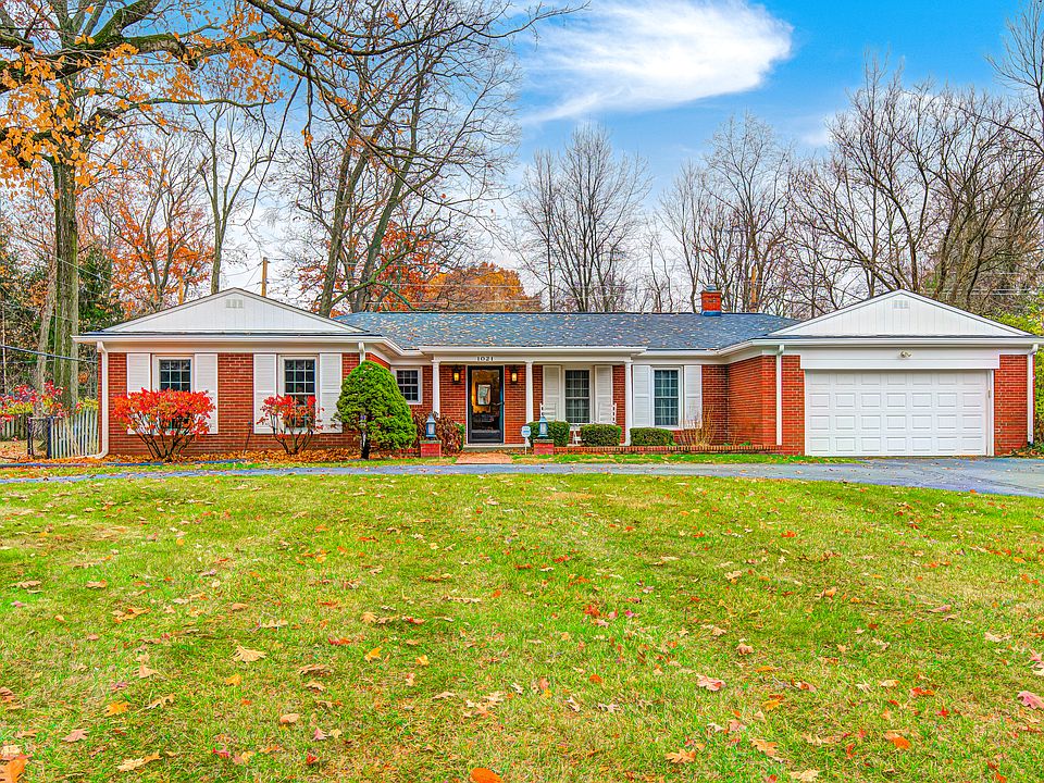 Well-maintained and lovingly cared for, this 4 bed, 2.5 bath brick ranch in Washington Township sits on a beautiful 1/2-acre lot with mature trees, a circular drive, covered front porch, and brick paver walkway. Enjoy the spacious 14x13 sunroom with vaulted ceilings and abundant natural light, plus a large deck and 2-car garage. Inside features a family room with brick fireplace and gas logs, updated kitchen, large primary suite with tiled shower, and original refinished hardwoods. Major updates: water heater (2025), furnace & A/C (2024), exterior paint (2024), generator (2024), roof/gutters (2020)