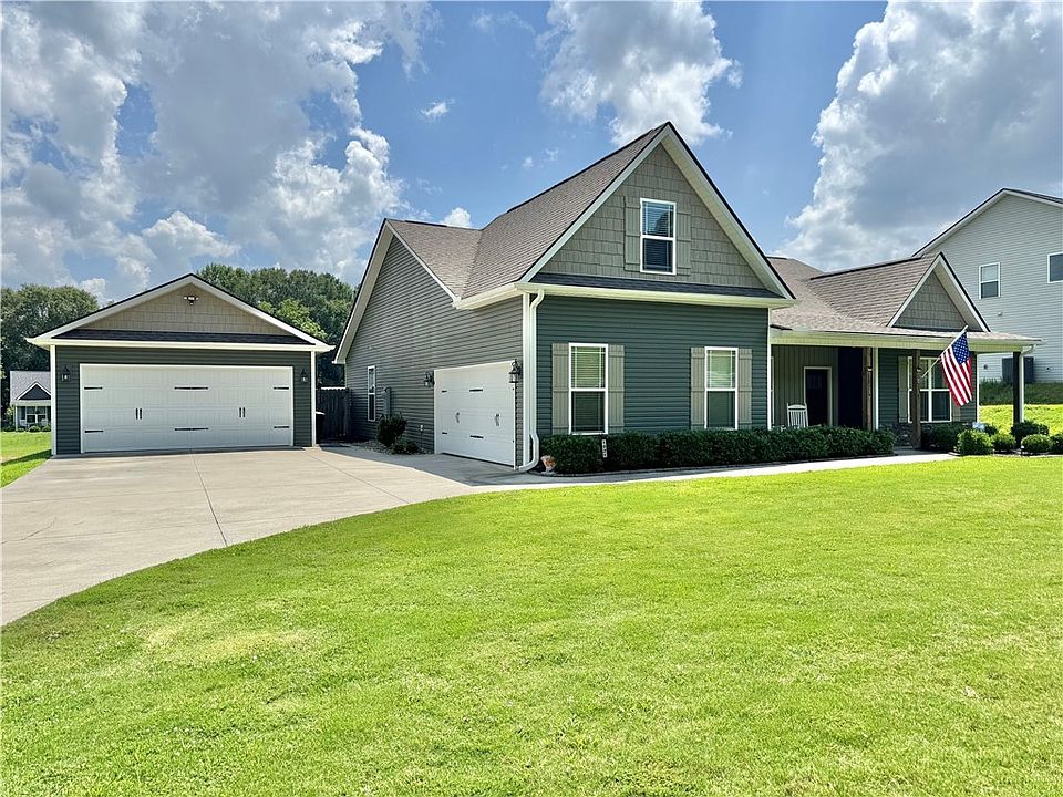 This stunning home in Old Bethlehem Commons offers the perfect blend of modern design, flexible living, and small community charm with a true country setting. Step into a welcoming foyer and discover a tremendously versatile floor plan. Just off the entry, a front room with elegant glass French doors offers the perfect space for a home office, formal dining, or quiet study. The heart of this home is the beautifully appointed kitchen featuring striking cabinetry, granite countertops, and a massive 9+ foot island overlooking the living room with vaulted ceilings, ideal for entertaining. Off of the living area is an additional space for dining, a reading nook, or room to extend your living area. The spacious master suite is a true retreat offering a tray ceiling, double vanities, a walk-in shower with white subway-style cultured marble, and generous walk-in closet custom designed by Carolina Closets. Durable upgraded flooring runs throughout the halls and main living spaces, adding warmth and style. Additional highlights include an oversized mudroom/laundry area, a bonus room for even more flexible space or 4th Bedroom, ceiling fans in all bedrooms, baths with chair height toilets, closets/pantry with 16” shelving, and a fully fenced backyard ideal for kids, pets, or weekend barbecues. French doors lead to a spacious 10x20 covered back patio, perfect for year-round outdoor enjoyment. Enjoy the convenience of an oversized .74-acre homesite and a 20x24 detached insulated garage with added lighting and electrical outlets perfect for extra storage, hobbies, or recreational gear. The additional 10x16 building with built in ramp can convey with acceptable offer. Relax knowing this home comes with a transferable termite bond. Located in a quaint 7-home community just minutes from the Pickens Golf Club, shopping, dining, schools, hospital, Downtown Easley, Downtown Pickens by easy access to Hwy 8 and Hwy 123. Only 20 Minutes to Clemson University, Tri-County Technical College, Southern Wesleyan University and 30 minutes to Downtown Greenville. This distinctive home truly has it all. Welcome home!