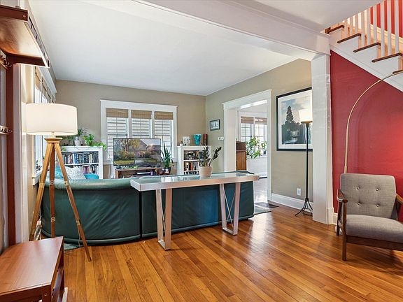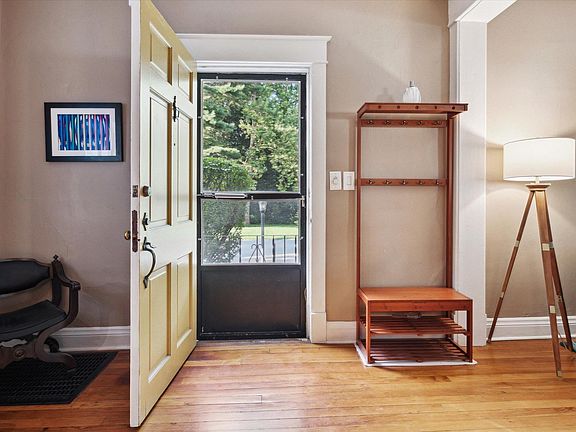 Charm meets modern living in this stunning 2-story Queen Anne right across from Shetterly Park on the river! Meticulously maintained and updated throughout, this 3-bedroom home seamlessly blends its historical character with modern amenities. Step inside and be greeted by the warmth of gleaming original hardwood floors flowing through the expansive living room and formal dining room. Abundant windows bathe the space in natural light, creating a bright and inviting atmosphere. The dining room boasts a beautiful new (2022) high ceiling, opens to a pantry closet, and a well-equipped kitchen featuring a breakfast bar and all appliances included. The large mudroom leading to the backdoor offers many possibilities, a coat closet, and a convenient half-bath. A High Tech Power Pet Door in the new back door allows your furry friend easy access to the charming fenced-in backyard. Upstairs you'll find that many updates have been made to ensure that the current & future homeowners continue to enjoy this haven for generations to come! Three generously sized bedrooms with ample closet space and convenient upper-level laundry ensure comfort and functionality. The full bathroom features a modern dual vanity/sink area, adding a touch of luxury. Looking for extra space? Pull-down attic access reveals a clean, unfinished attic with updated electrical wiring access, ready for your future vision. The dry basement offers even more storage along with a Whirlpool whole-home water filter, water softener, and a regularly maintained furnace. Peace of mind comes standard with updated electrical throughout (no knob & tube!) and most, if not all, of the plumbing having been modernized. Relax and unwind on either the shaded front patio or the sunny back patio. A charming deck leads you to a beautifully landscaped backyard complete with a brick walkway, a lovely pond with a working fountain, and a spacious 2-stall detached garage with a new door, track, & tension mechanism. A unique, mural-painted hinged fence panel offers a more spacious entryway into the backyard. Regularly maintained central A/C and a newer roof (only 3 years old!) ensure year-round comfort and peace of mind. This Riverside Dr. gem offers the perfect blend of historic charm, modern updates, and a delightful backyard oasis. Don't miss your chance to own a piece of history with all the conveniences of today!