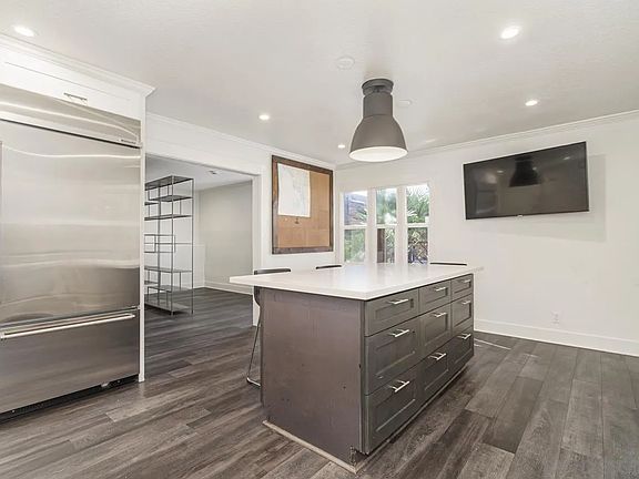 - Granite Counters, Kitchen Island, Open Floor Plan, Recessed Lighting, Remodeled Kitchen