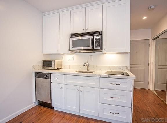 Completely renovated studio, just steps from the water! This light and bright unit features an updated kitchen and bath with custom cabinets and flooring! The east facing patio captures the morning sun and cool ocean breeze. Located in the heart of Point Loma, in a secure gated complex with a fitness room, community BBQ and pool area with beautiful views of the Bay! Walk or bike to Shelter Island to enjoy the local shops and restaurants. Sewer: Sewer Connected Topography: LL