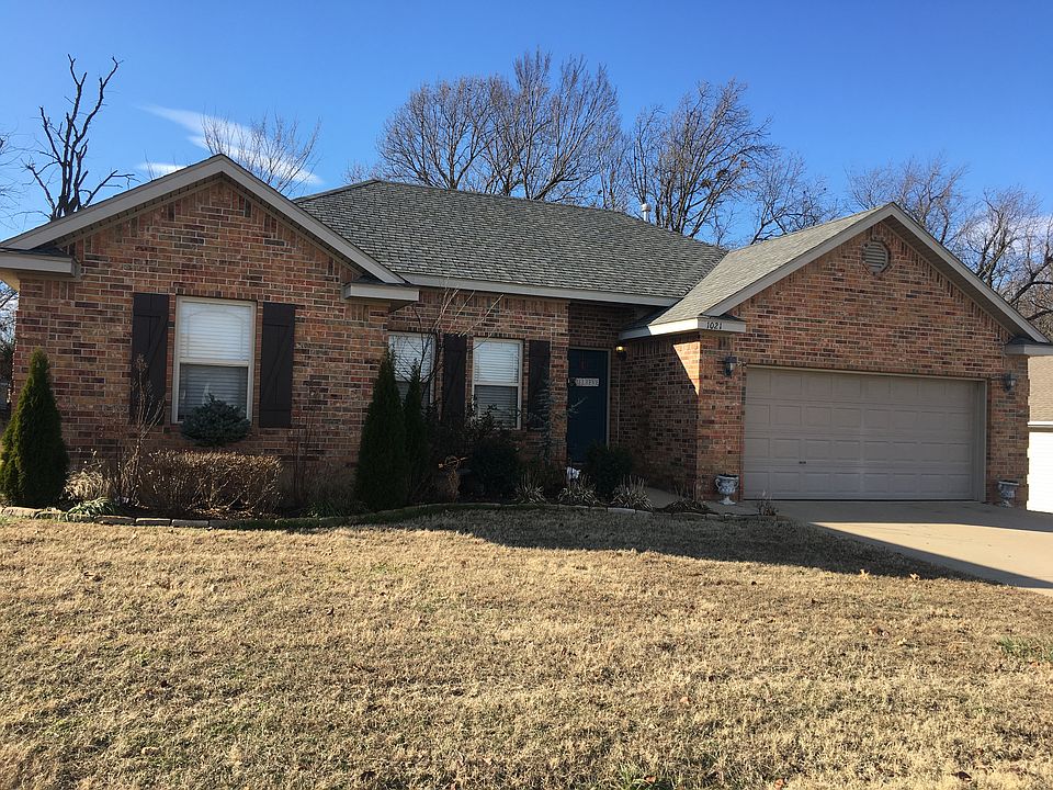 Island Kitchen, Backyard that backs up to open land, split floor plan, these are just a few of the great things about 1021 Sundowner ranch in Prairie Grove, Arkansas. The home qualifies for RD financing (100% Loan, no down payment)