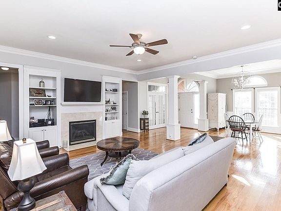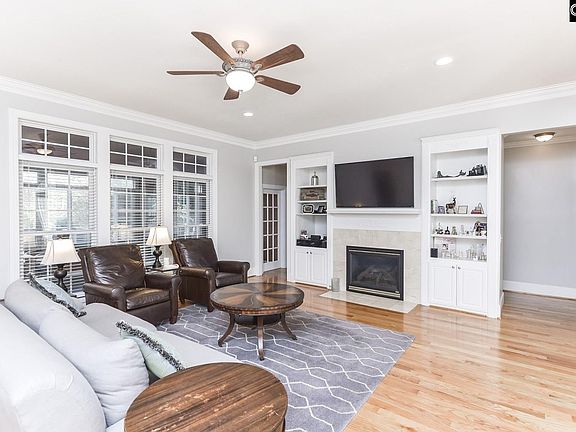 - InteriorFeatures: Ceiling Fan(s), Central Vacuum, Recessed Lighting, High Ceilings, Wired for Sound, Office, Sun Room, Ceiling Fan, Floors-Hardwood, Molding
