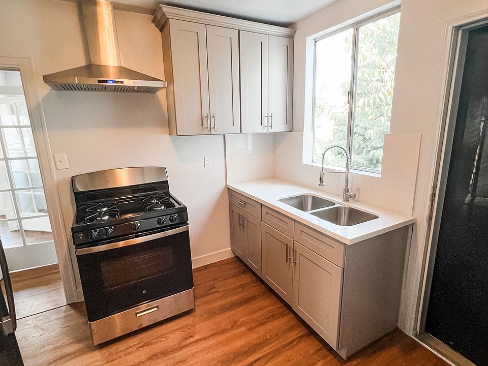 Fully remodeled kitchen with refrigerator + stove/oven included.