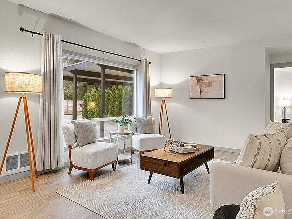 In sought-after Edmonds this 2-bed rambler offers walkability & cozy living. Over $75K in updates. Step into a light-filled circular floorplan w/ easy flow. Living room features oversized window. Kitchen w/ modern slate-gray cabinetry, stainless-steel French-door fridge, tray ceilings & new hardware. Dedicated dining area. Full bath updated offers shelving & storage. Newer W&D. LVP flooring throughout. Spacious, level, & fully fenced backyard transformed w/ fresh landscaping, outdoor lighting, retaining wall & storage shed. Sprinklers for easy maintenance. 2-car carport + driveway & street parking. Exterior refreshed for curb appeal & charm. Rare single-level living. Walk to parks, coffee, dining & schools.