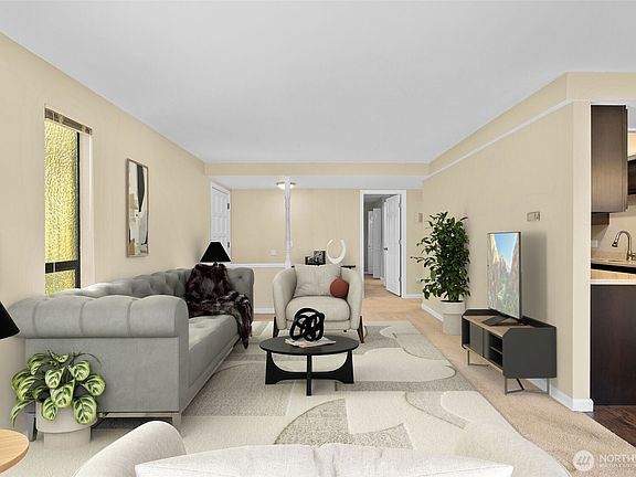 Beautifully updated 1-bed, 1-bath ground-floor corner unit in the gated Caravelle community of East Hill, Kent. Features quartz countertops, modern finishes, and no popcorn ceilings. Enjoy your own private exterior entrance and peaceful patio just steps from the pool and clubhouse. Covered carport parking with adjacent storage offers convenience, while the spacious layout includes double closets and full bath access. HOA includes water, sewer, trash, and common area maintenance. Community laundry is located close to unit. Walkable to Kent Station, ShoWare Center, shopping, dining, and transit. Stylish, move-in ready, and perfectly located for easy living in a vibrant neighborhood.