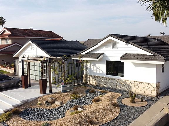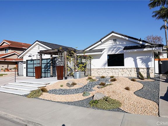 Discover this stunning, meticulously maintained single-story home that offers an inviting atmosphere and ample space for comfortable living. With generously sized bedrooms and 3 well-appointed bathrooms, this residence encompasses over 1,900 square feet of thoughtfully designed space, nestled in a tranquil neighborhood. As you approach the entry through the private front walkway, you will be greeted by a beautiful window pained front door. Step inside and the kitchen and breakfast area is just past the flex space to the right. The kitchen features stainless appliances and plenty of cabinet space. The property boasts not one, but two luxurious primary suites, each with spacious updated en-suite bathrooms. Both suites also feature generous closet space for all your belongings, ensuring that organization is effortless. A convenient laundry room is perfectly placed inside to enhance your daily routine. Outside, the exquisite exterior has been thoughtfully remodeled with custom updates, creating a sophisticated yet comfortable curb appeal. The drought-resistant landscaping not only enhances the visual appeal of the property but also promotes sustainable, eco-friendly living. Spend tranquil moments in your serene Zen garden, a perfect retreat for relaxation and reflection. Location is key, and this home is ideally situated just a short stroll from a bike trail and approximately 2 miles from the sun-kissed shores of Surf City's beautiful beaches. Easy access to both HB and Newport Beach. Additionally, you'll enjoy the advantages of residing within the esteemed Huntington Beach school district, renowned for its exceptional educational opportunities. Come discover all of what this amazing home and location has to offer. The dividing wall was removed between the two secondary bedrooms and made into one room but can easily be put back to separate the rooms again into two bedrooms.