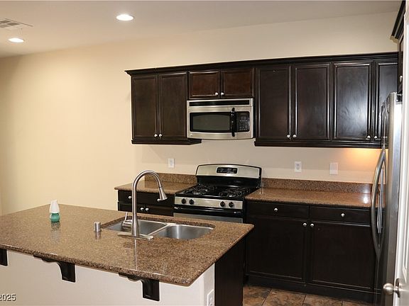 This beautifully updated home features a bright open floorplan with fresh paint and plush new carpet throughout. Offering 4 spacious bedrooms and 2.5 bathrooms, this home is designed for both comfort and functionality. Enjoy a large great room perfect for entertaining. The open kitchen boasts an island with breakfast bar, granite countertops, modern appliances, and ample cabinet and counter space. The primary suite includes a separate tub and shower for a spa-like retreat. Step outside to a private backyard with a covered patio ideal for relaxing or entertaining. Located in the heart of Mountains Edge, this home is close to top-rated schools, Exploration Park, shopping, and easy freeway access. A fantastic layout for any lifestyle don't miss this incredible opportunity!