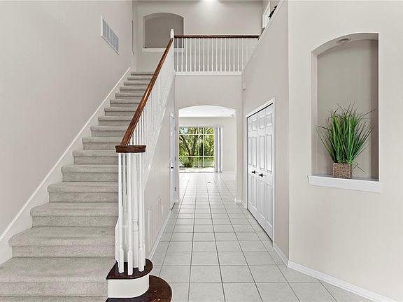 Executive home in Quail’s Landing of Arbor Greene, perfectly positioned on a waterfront lot and offering one of the best values in the community. At over 3,300 sq. ft., this is the best-priced large home in Arbor Greene. A rare find with dual master suites—one upstairs and one downstairs—this layout is ideal for multi-generational living or flexible use. The home features 4 bedrooms, 4 bathrooms, A downstairs flex room/office, an upstairs office, and a 3-car garage. Spacious living areas filled with natural light and water views. The dramatic two-story foyer opens to a formal living room with plantation shutters and custom millwork, leading into the open-concept main living space with 12-foot sliding doors to the screened lanai. Outside, enjoy an outdoor kitchen, spa, and pavered patio overlooking the water. The kitchen is finished with solid marble countertops, a center island, double ovens, 5-burner gas range, and stainless-steel appliances. Off the kitchen, you will find a large flex room that can be used as a downstairs office, play room, or private reading room. The first-floor primary suite has floor-to-ceiling windows with water views, a soaking tub, walk-in shower, dual vanities, and large closet. Upstairs includes a second master suite with vaulted ceiling and a spacious ensuite, plus two additional bedrooms and a home office with built-in desk and cabinetry. Roof replaced in 2016. Arbor Greene offers 24/7 manned gates, clubhouse with event space, fitness center, Olympic-sized and resort-style pools, tennis courts, pickleball courts, playgrounds, and miles of walking paths and nature trails. Conveniently located minutes from I-75 with quick access to shopping, restaurants, hospitals, USF, and downtown Tampa. This home offers both space and value in one of New Tampa’s most established communities.