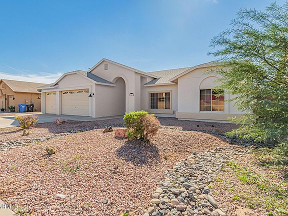 The search is over! Discover this charming single-story home that has been tastefully renovated! This North/South-facing property offers a 3-car garage. Come inside to find a blend of tile & wood-look flooring, graceful archways, fresh paint, and ceiling fans. Bright living & dining room sets a warm tone for comfortable everyday living. The kitchen displays plenty of honey oak cabinetry, stainless steel appliances, recessed lighting, and a cozy breakfast nook with a lovely bay window. You'll love the primary bedroom, which provides a private bathroom with dual sinks and a walk-in closet. Large Arizona room is perfect for gatherings, while the spacious backyard with a storage shed provides additional outdoor enjoyment. Don't miss it!