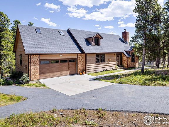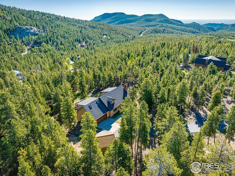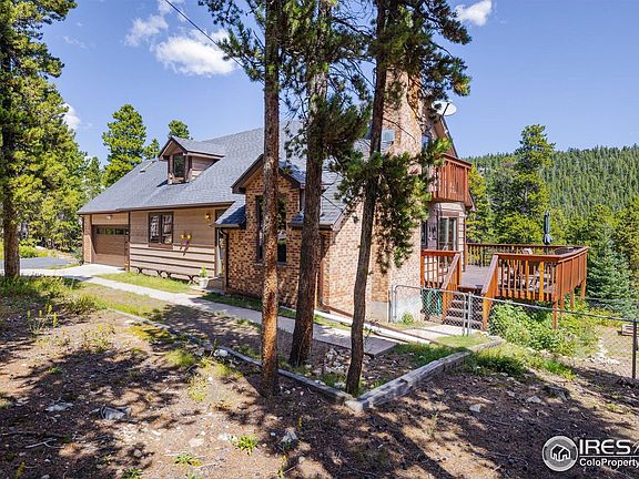 Escape to the soul-stirring beauty of Stanton Acres, where this mountain home offers a lifestyle steeped in nature, adventure, and community. Perfectly situated just below the Continental Divide and only minutes from the breathtaking trails of Golden Gate Canyon State Park, this property is more than a home, it's a gateway to mountain living at its finest. Surrounded by pines and aromatic junipers, the home is a private sanctuary with panoramic views framed by expansive windows. Step inside to find warm cork flooring that flows through the open-concept layout. The heart of the living space is a custom stone fireplace with a wood stove insert, inviting cozy evenings. The kitchen and dining area are bright, open, and ready to host everything from intimate dinners to festive gatherings. Step outside to the spacious, reinforced deck which is ideal for soaking in the stars from a future hot tub or enjoying the sounds of nature with your morning coffee. The main level includes a charming bedroom and updated full bath, with convenient laundry and storage just down the hall. Upstairs, the vaulted loft offers direct deck access while the spacious primary includes an attached office or studio, perfect for remote work or creative pursuits. Bonus spaces include a charming remodeled detached two-story "cabin suite" with a sitting area and upper-level bedroom, an oversized two-car garage with a custom people door, and tucked into the trees, you'll also find a brand-new Finnish sauna and a peaceful yoga deck. Recent updates bring peace of mind: whole house water filtration system, new hot water heater and electrical, chimney cleaning with new topper, newer roof, gutters, decking, and forced air fans for year-round comfort. Located in the welcoming Deer Trail Basin community just below Star Peak, this home blends solitude with connection. Enjoy quick access to South Boulder, Nederland, Eldora Ski Mountain, and DIA, making adventure, skiing, and travel effortlessly within reach.