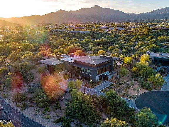 One of Desert Mountain's newer iconic homes is now available! This breathtaking contemporary offers stunning panoramic mountain views in an ideal central location. Full Golf Membership available. Enjoy the world class Sonoran Clubhouse just steps away, offering dining, fitness, a full service spa, pickleball, and more. This gem was conceived by famed Architect, Wendell Pickett, co-designer of the 7 community in Desert Mountain. The main level rests upon a spacious, temperature controlled 10 car garage. This elevation allows for an amazing view package and treasured privacy adjacent to a 15 acre natural arroyo. Every detail was thoughtfully considered in the home's design: Gaggenau appliances in the gourmet kitchen. Bulthaup cabinetry. A medical grade IQ Air system. Lutron home automation