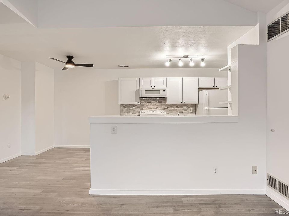 Renovated 2-bedroom, 1-bathroom condo with a garage and washer and dryer included! This stunning condo boasts an open floor plan with updated flooring, a modernized kitchen, and a refreshed bathroom. The kitchen features stainless steel appliances and ample cabinet space, perfect for cooking and entertaining. The spacious primary bedroom and a versatile second bedroom, which could also serve as a home office, offer plenty of comfort and functionality. Natural light flows through stylish window shutters, creating a bright and airy ambiance. The garage provides convenience and extra storage, while nearby parks, recreation areas, and open space offers endless opportunities for enjoyment. Conveniently located, this condo offers easy access to shopping, dining, and and other amenities.
