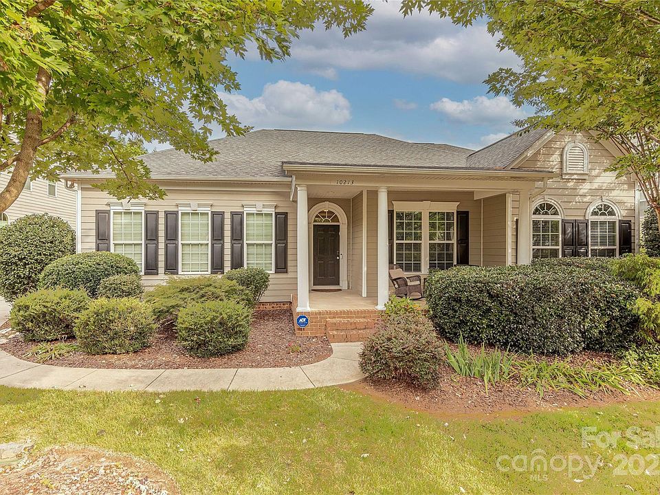 Situated on a premium cul-de-sac lot in Ballantyne’s premier community of Ballanmoor, this rare ranch with bonus space upstairs has been beautifully updated and is move in ready. A rocking chair front porch leads to hardwood floors that unite the natural light filled open concept floor plan. Great room features entertainment nook and double sided fireplace which is open to the flexible sun room. Chef’s kitchen features ample 42” cabinet, granite counters, gas range and stainless appliances. Grand primary suite on the main is highlighted by decorative tray ceiling and en suite bath including garden tub, dual vanity, glass enclosed shower & two walk-in closets. Two additional guest suites on main level plus French door enclosed study. Upstairs features incredible Bedroom 4 / bonus room with full bathroom and walk-in closet. Relax on the entertaining deck or on the expansive patio overlooking the manicured backyard. Conveniently located moments from premier shopping, dining and entertaining, this home is truly a must see.