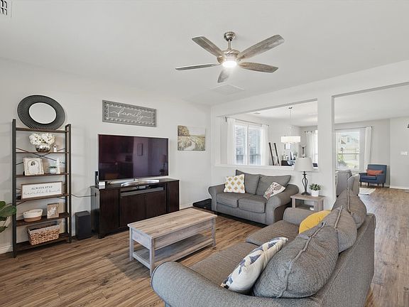 Located just steps from the elementary school, this stunning home 4 bedroom 3 and half bath is nestled in a peaceful cul-de-sac that welcomes you to the covered front patio. Inside, enjoy two spacious living areas with upgraded lighting, perfect for relaxing or entertaining.