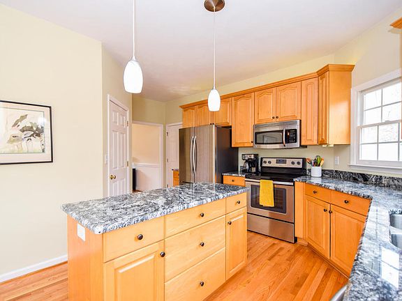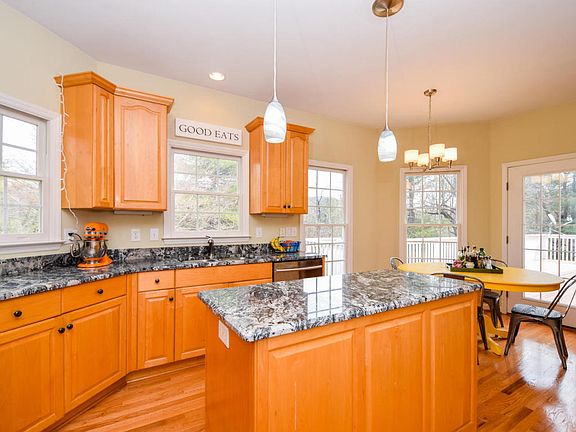 If you are searching for a place to live, hike, bike and have your very own get away each day when you return home, then this is the home of your dreams! This lovely four bedroom home is situated on over four acres! Recently updated with new granite, stainless appliances, and light fixtures in the spacious eat-in kitchen! New hardwood floors and chandelier in the dining room! Entire interior professionally painted with light, neutral color! New carpet in family room and bedrooms! Entry level bedroom and private full bath! Upstairs features the master suite with a gas fireplace, large four piece master bath and walk-in closets! Two additional bedrooms share the hall bath! The basement is fantastic and has the studs, ready to be finished into a recreation room and additional bedroom! Tons of