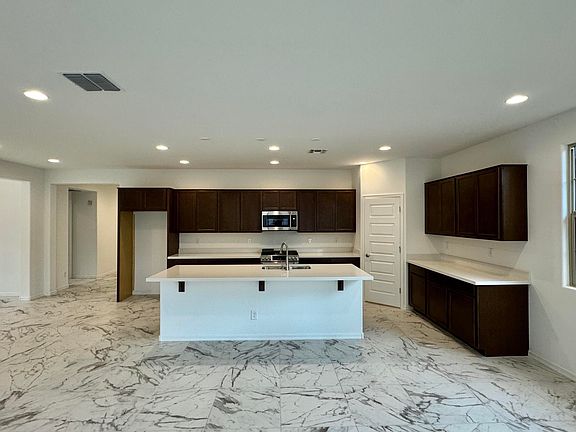 The heart of the home is a thoughtfully designed gourmet kitchen, complete with upgraded truffle-finish cabinetry, quartz countertops with a 1.5'' square eased polished edge, a Sterling double-basin undermount sink, and a built-in recycling center. Every detail has been considered to blend function with upscale design.