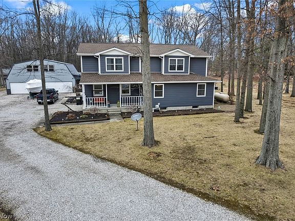 Young at Heart...Venerable design with modern features offers you graceful living in this four bedroom Colonial style home. Welcoming front porch, inviting foyer entrance, first floor bedroom and/or office with private bath, two story great room adjacent to eat-in kitchen with center island for added counter space, french doors leads you to the four season sun room, ceramic flooring, wood burning stove keeps the home nice a cozy, sliding door to access the private backyard, innovatively designed loft, first floor laundry room, walk in pantry, basement, 40 x 40 barn/garage with a heated bay, 40 x 18 covered patio, 33 foot round above ground heated pool, deck, custom tree house adds character and charm, gutter guards, whole house generator, electric hot water tank, over two scenic acres to roam and explore. Step back in time to step up to Quality! Don't settle for less call today.