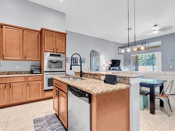With nearly 2,600 square feet, this highly desirable, sprawling floor plan by award-winning builder, Taylor Morrison, is nestled away in the quiet community of Avelar Creek. LOW HOA and NO FLOOD ZONE! Live a life of comfort in a masterfully designed OPEN FLOOR PLAN including all the extras. Situated on 1/4 acre with no rear neighbors, this home offers 4 bedrooms, 3 full baths, and a 3-CAR GARAGE! Enter the foyer to find high tray ceilings, tons of natural light and tile flowing throughout. The well-appointed kitchen features 42" wood cabinets, granite countertops, cooktop, double built-in ovens, and natural gas hookups. The kitchen island with breakfast bar opens to the dining space and great room making this area perfect for easy entertaining. The thoughtful layout of this home offers a true split floor plan. Located opposite the secondary bedrooms and bathrooms, the primary retreat is perfect for relaxation and privacy. The large primary en-suite offers a garden tub for soaking, executive height stone countertops with split vanities, and a walk-in shower. The massive GREAT ROOM is the perfect entertainment space with a seamless transition through the SLIDING GLASS DOORS opening to the extended, COVERED LANAI! NATURAL GAS, vinyl privacy fencing, and prewiring on windows and doors for security add to the convenience of this home. Meet neighbors easily at one of the many community events hosted by the HOA, or at the beautiful community pool & shaded playground just around the corner. You can even reserve the clubhouse for a private party! Enjoy strolls through the gorgeous neighborhood enjoying a quieter way of life or venture out to the walking / bike paths leading to grocery stores and restaurants in either direction. Zoned for HIGHLY RATED SCHOOLS as well as numerous private or school-choice options, this property is close to excellent dining, shopping, and recreation. Enjoy quick access to employment corridors, expressways, international airports, MacDill Air Force Base, and an array of top destinations in any direction. Love the Florida lifestyle and take advantage of world-renowned beaches, theme parks, world-champion sports teams, open-air markets & festivals, nature parks, waterfront entertainment & activities. Close to esteemed medical centers, VA Hospitals, colleges, and universities. Enjoy the comfort of quiet living with the convenience of location - this is everything you have been waiting for!