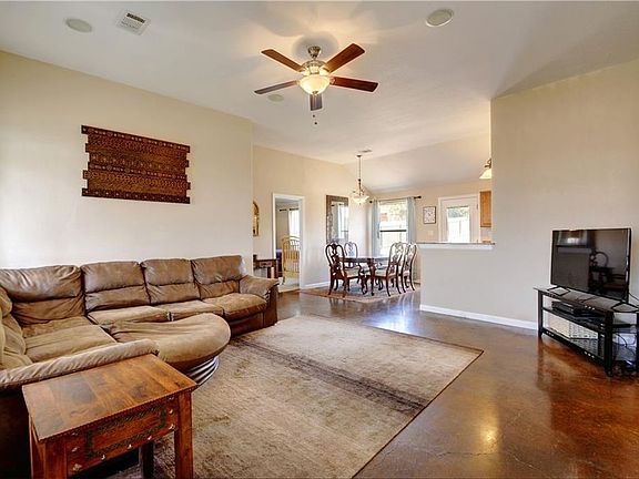 Gorgeous home with open floor plan that feels bigger than square footage! Formal dining overlooking the private backyard. Expansive large deck, Texas fire pit, and serene yard make it a perfect setting. Stained concrete floors, open kitchen & bar with granite counter tops. Large inviting front porch to watch the sunset. Deer Creek has a playground, volleyball courts & beautiful ponds. Neighborhood lake privileges available. Fabulous Lake Travis Schools! Fresh paint throughout & brand new carpet.