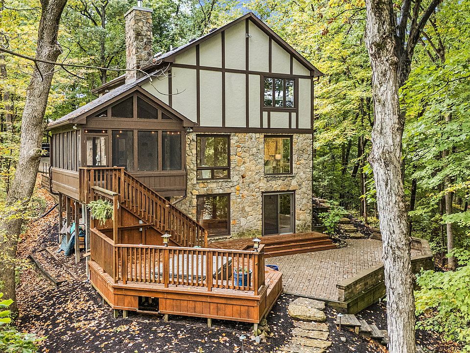Wood-burning fireplaceWalkout lower levelScreened porchSpacious primary suitePrivate lake frontageMultiple decksOpen layout