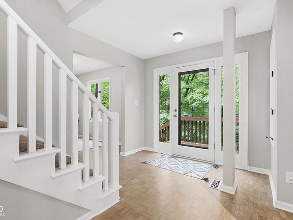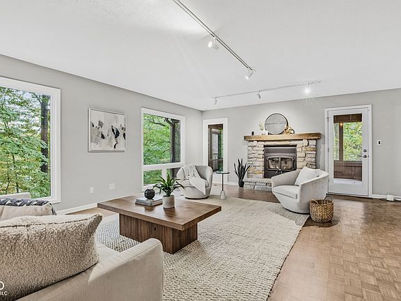 WATERFRONT PROPERTY! Stunning 4BR/3.5BA custom home on 1.18 wooded acres with over 150 feet of private lake frontage on beautiful Indian Lake. Thoughtfully designed for privacy and to showcase breathtaking lake and wooded views from every window, this home offers a perfect balance of nature, comfort, and craftsmanship creating a true connection with nature in every season. Enjoy the warmth of the wood-burning fireplace, a beautifully remodeled kitchen with a large center island, and an open layout ideal for entertaining. The spacious primary suite features dual walk-in closets, double sinks, and a garden tub overlooking the trees. The walkout lower level includes a family room with wet bar and access to the wooded path leading to the water's edge. Multiple decks and a screened porch provide the ideal spaces to relax, entertain, or simply enjoy the peaceful setting. 3-car garage and beautifully maintained inside and out including updates to ease the mind of the new owner for years to come. Located in one of Indy's most unique lake communities offering private beaches, boating, fishing, and community events like the annual picnic. Experience the feeling of a secluded getaway while being just minutes from Fort Harrison State Park, restaurants, and city conveniences. A rare opportunity to own a private waterfront sanctuary right here in Indianapolis! This is the first time in 30 years this home has been available. Don't wait...schedule your showing today!